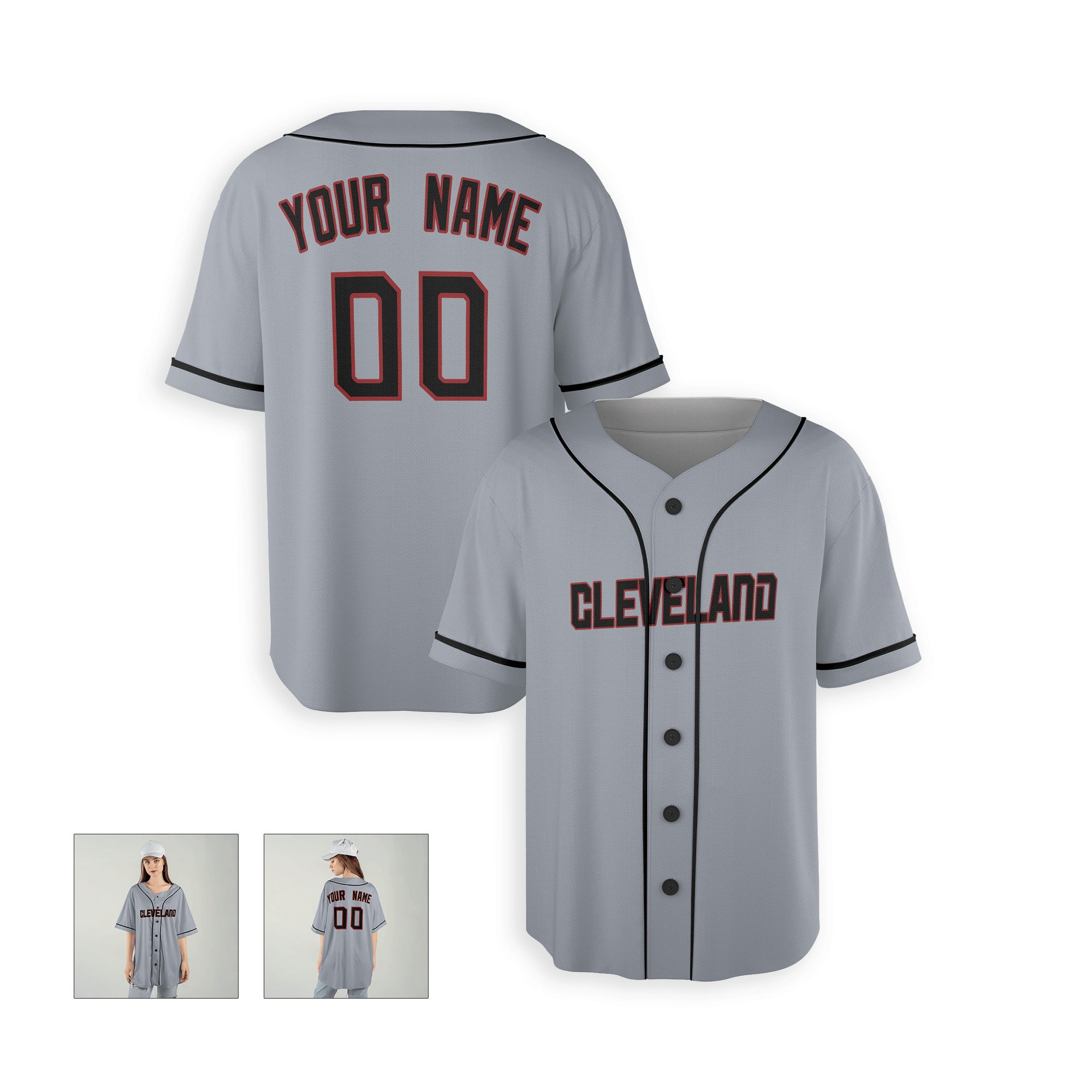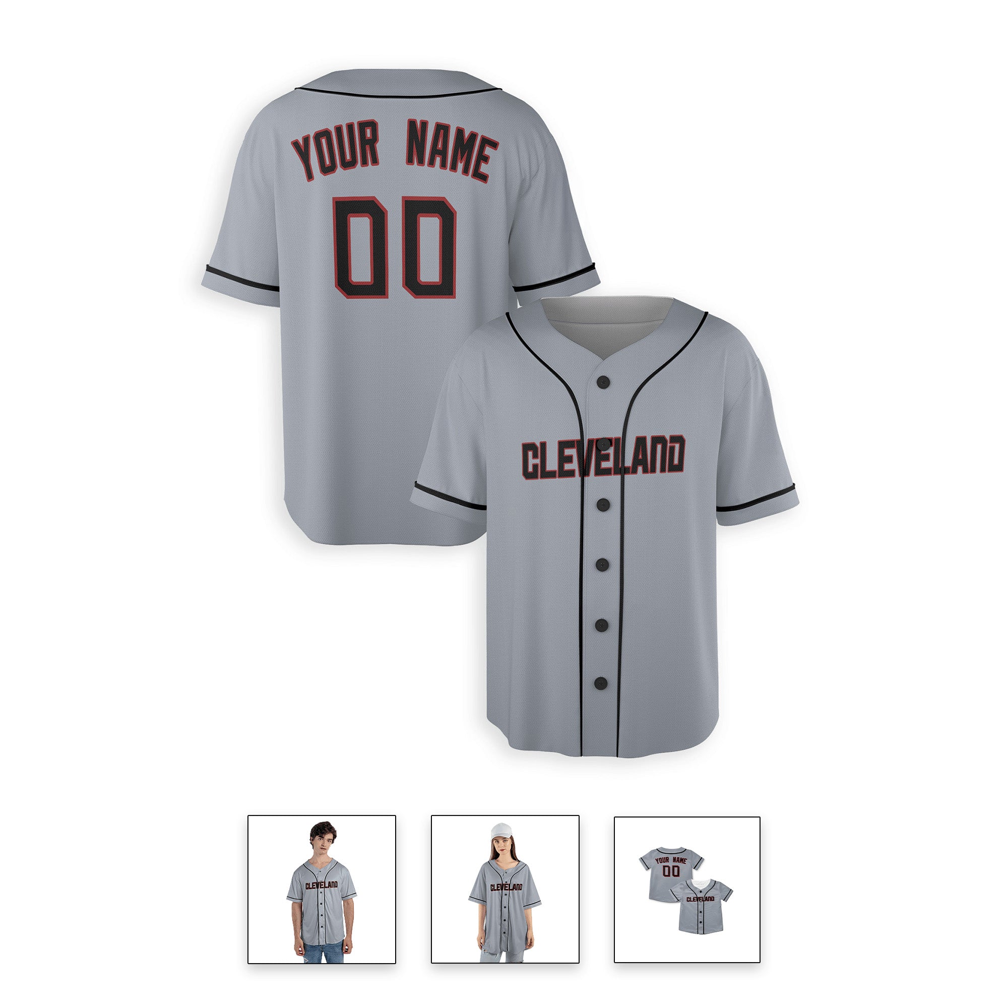 Personalized Cleveland Guardians Inspired Alternate Style Jersey - Gray Black