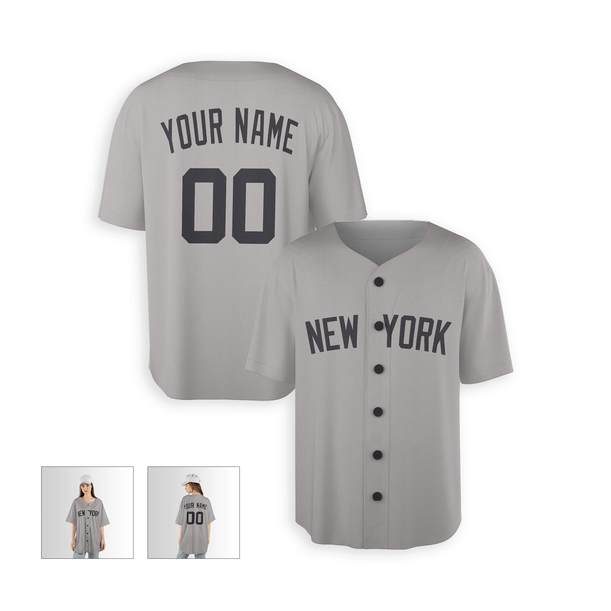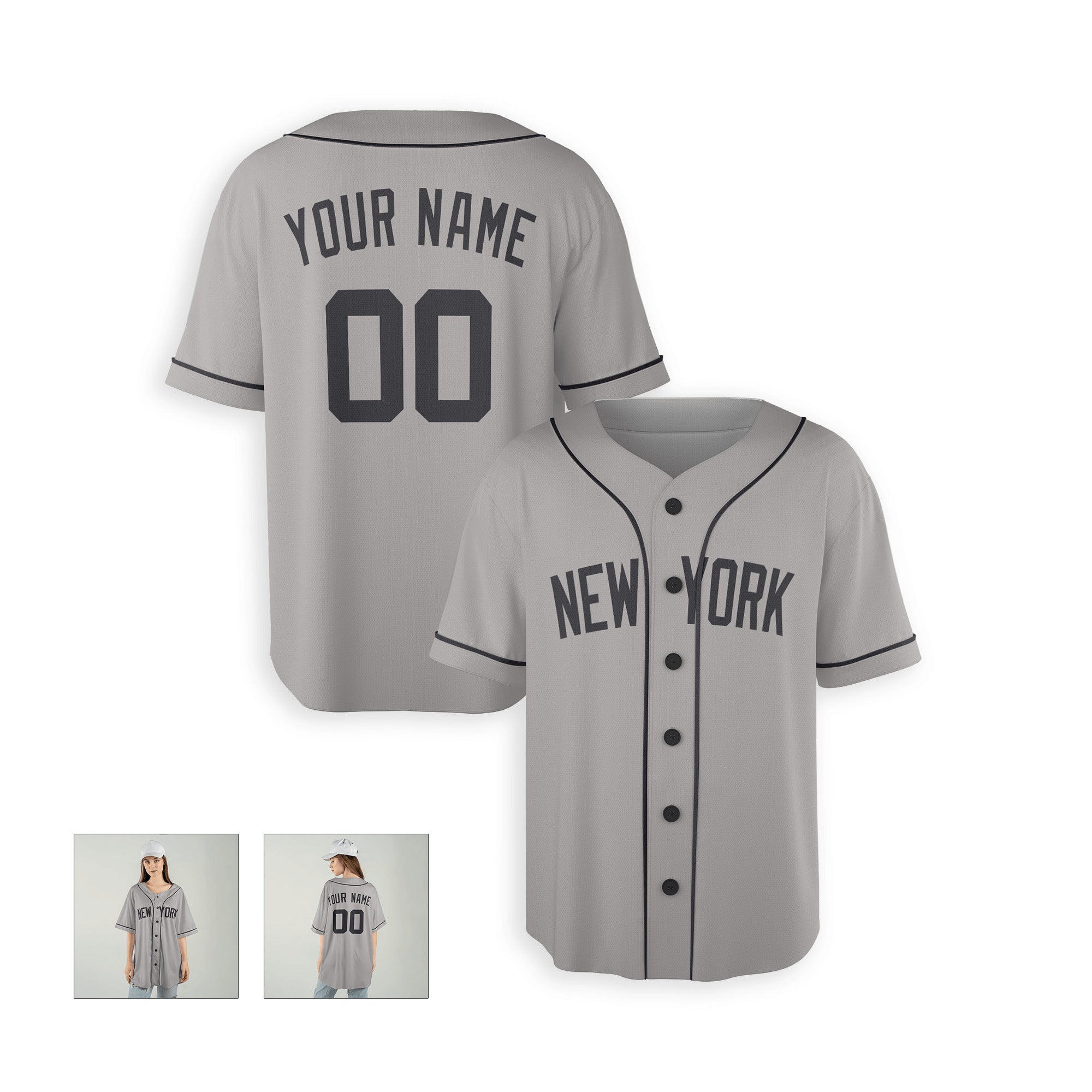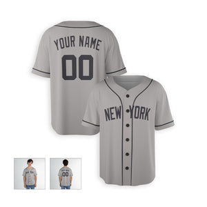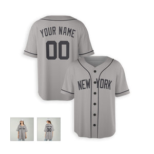 Personalized New York Yankees Inspired Alternate Style Jersey with Team Name & Number for Men, Women, Youth, Kids - Piping / No Piping Options - Gray