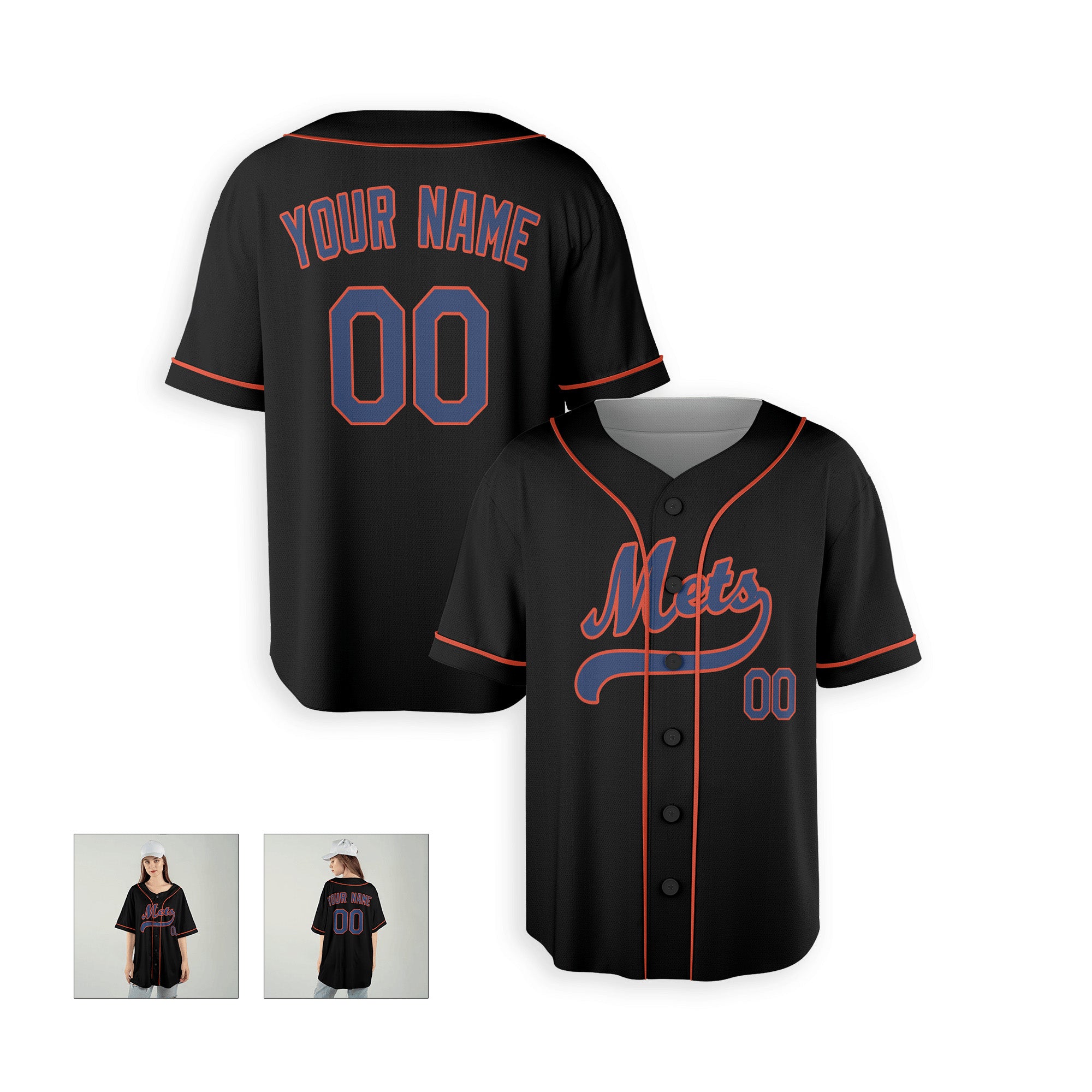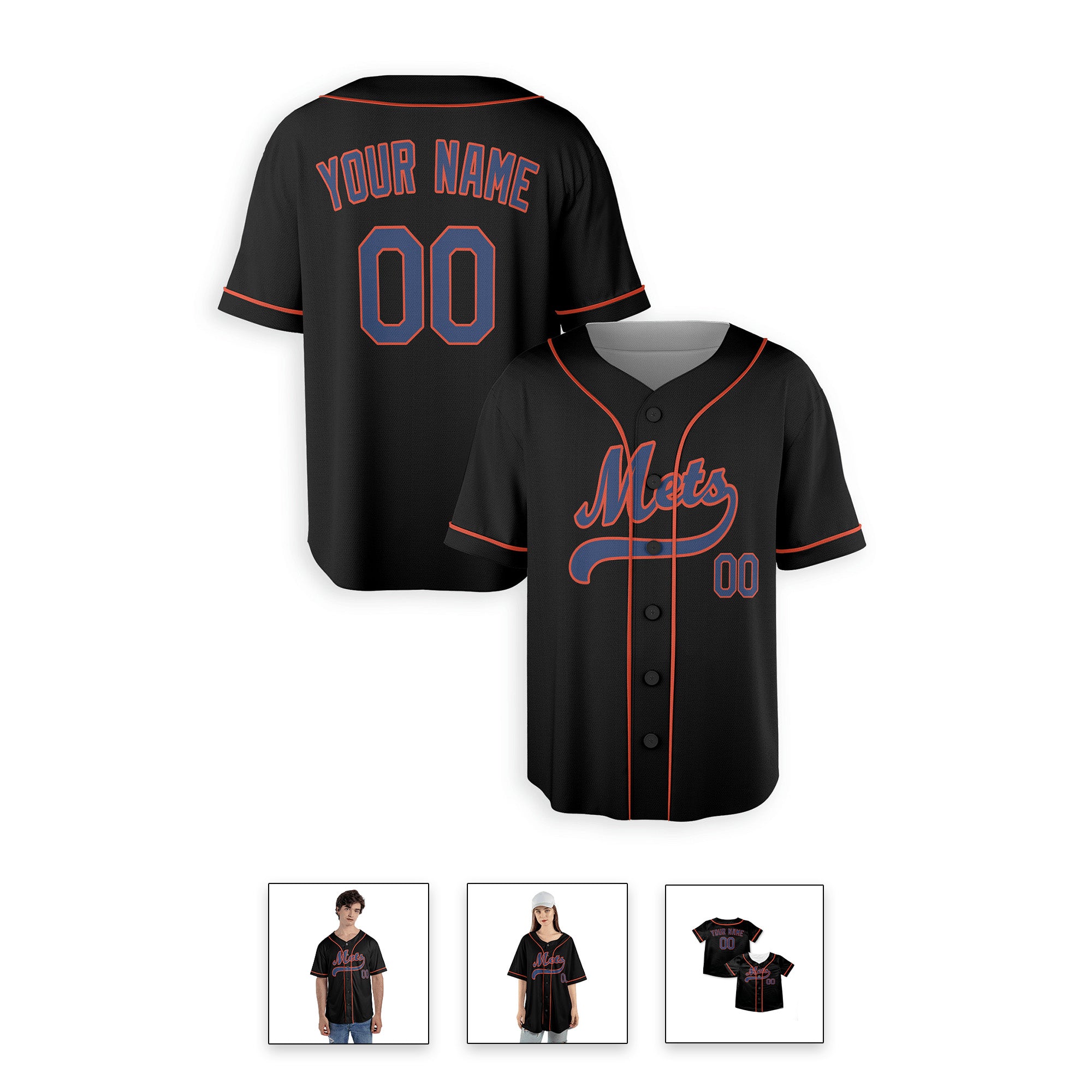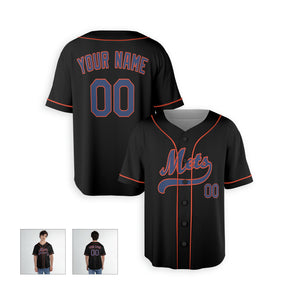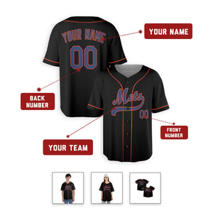Personalized New York Mets Inspired Alternate Style Jersey with Team Name & Number for Men, Women, Youth, Kids - Piping / No Piping Options - Black