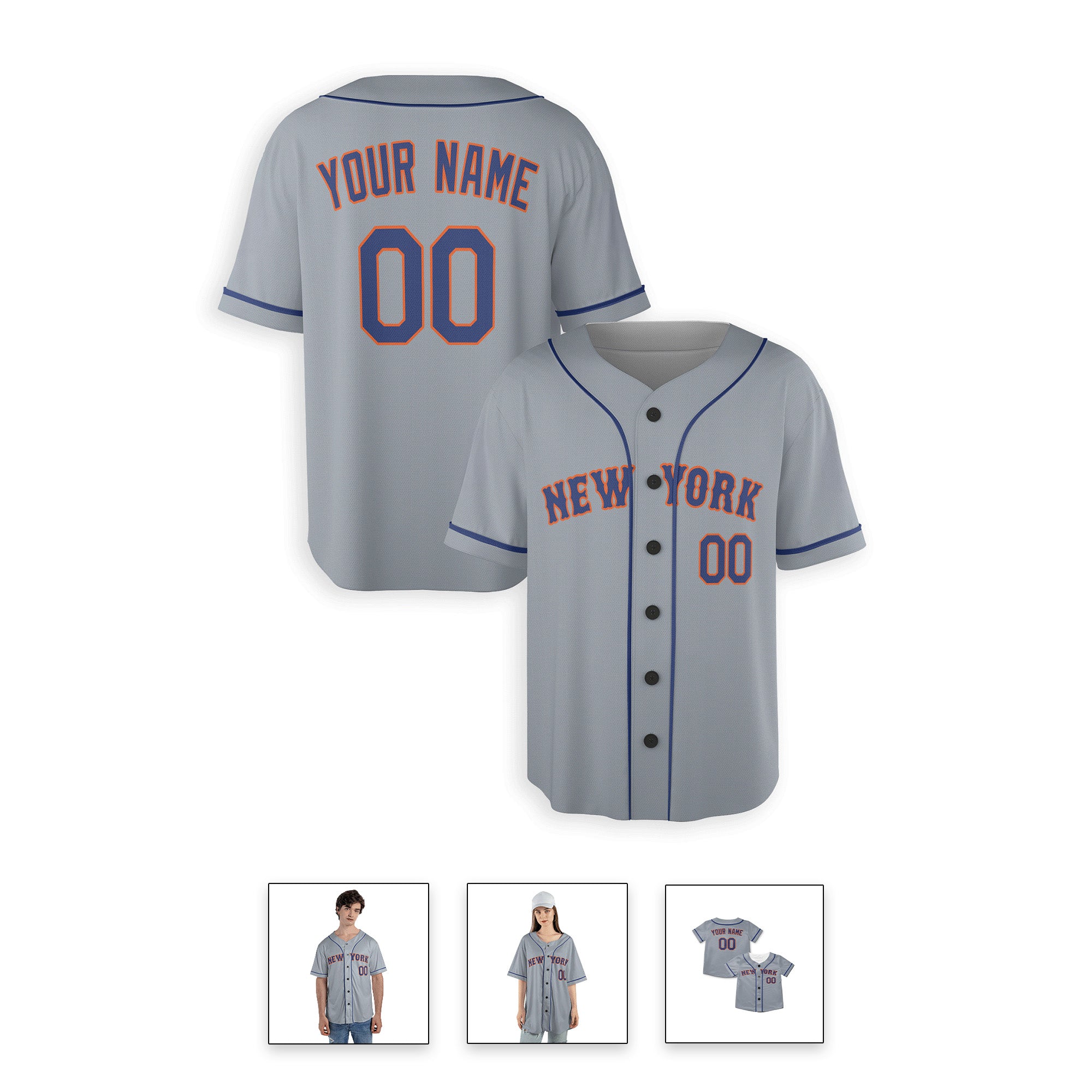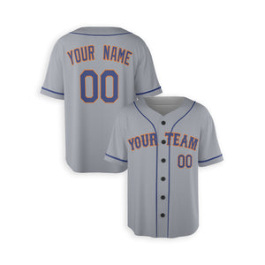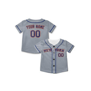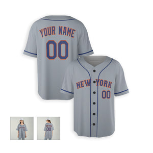 Personalized New York Mets Inspired Alternate Style Jersey with Team Name & Number for Men, Women, Youth, Kids - Piping / No Piping Options - Gray