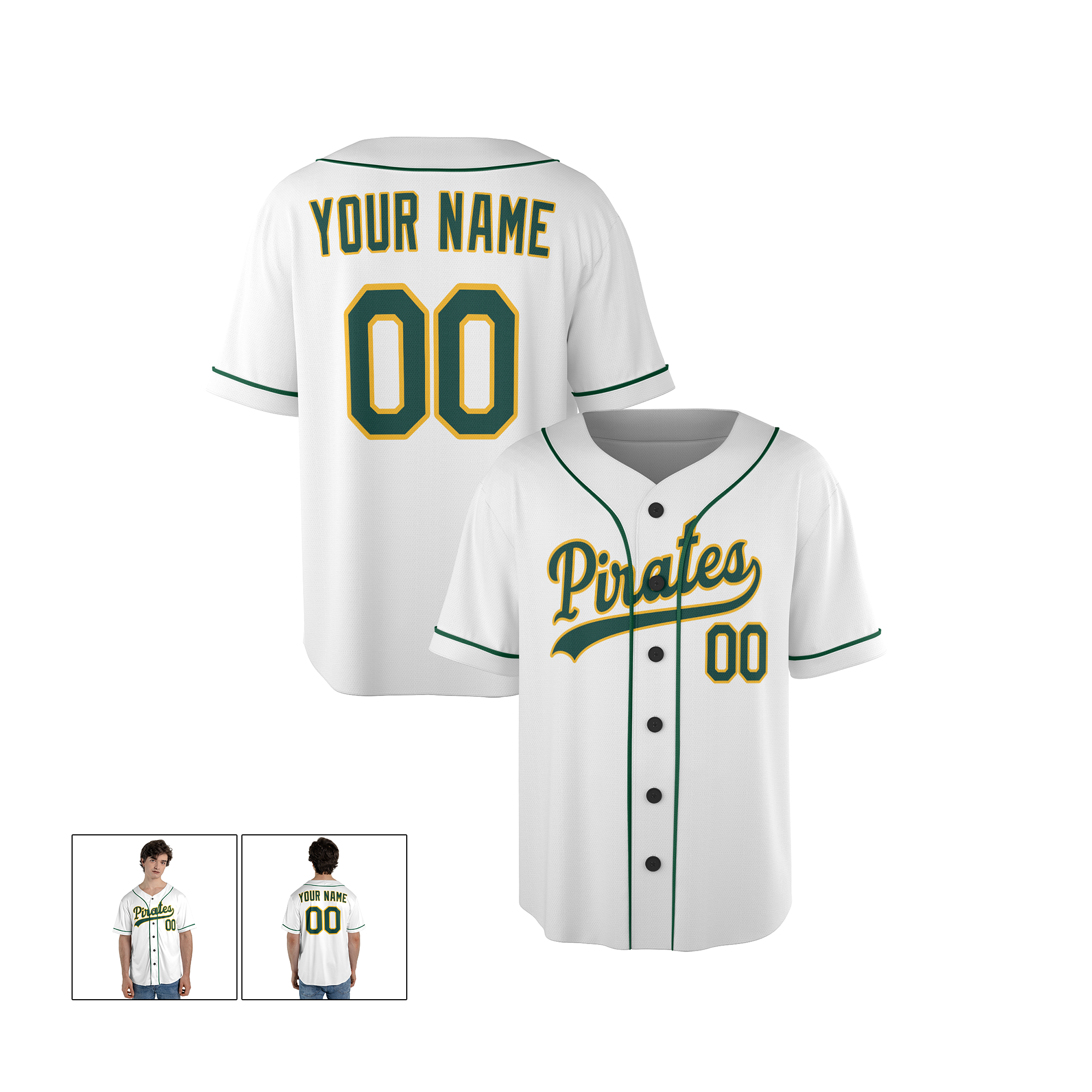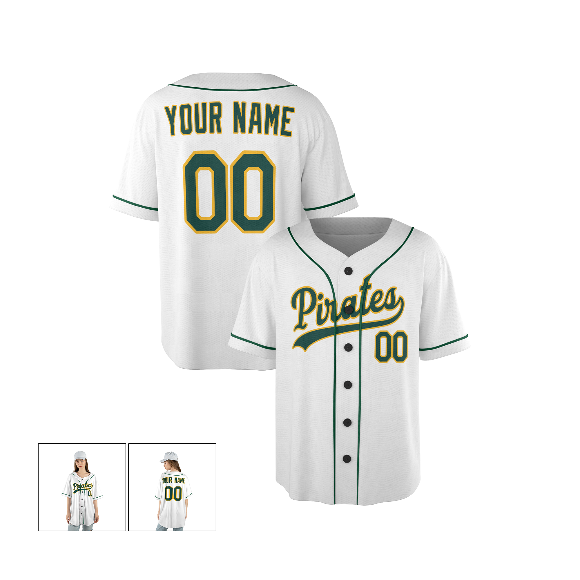 Personalized Pittsburgh Pirates Inspired Alternate Style Jersey - White Green